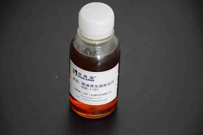 SGR1103黑液專用阻垢分散劑是由有機膦酸鹽、膦羧酸、聚羧酸類阻垢分散劑、降粘劑、表面活性劑等組成。該產品能有效的抑制碳酸鹽、銹蝕產物、硫酸鹽或硅酸鹽等結垢。作為最新研發的高性能阻垢分散劑,它可以同時與黑液中的硅、草酸鹽、各種糖類發生反應使其失去粘性,使之不易在蒸發器表面沉淀附著。分散劑還會與蒸發器表面所結污垢發生化學反應,使老垢溶解脫落,達到清除老垢的目的。保證了蒸發器表面清潔無垢,提高熱傳導速度,增效節能,效益明顯。